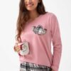 Piżama damska Luna 322 z Długim rękawem kratka i róż: