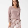 Piżama damska Luna 348 długa bawełniana Beż w kwiaty:
