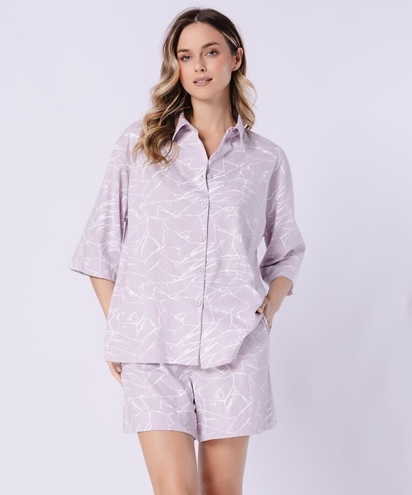 Piżama damska M-max Leveza krótkie spodenki rozpinana liliowa: