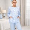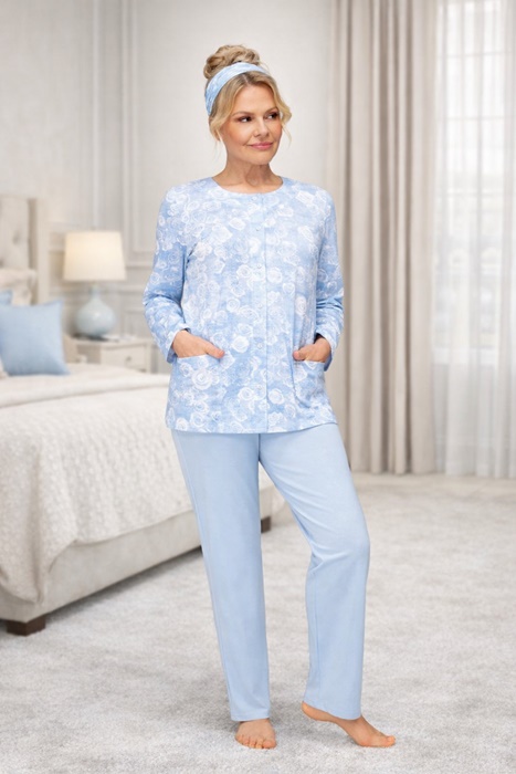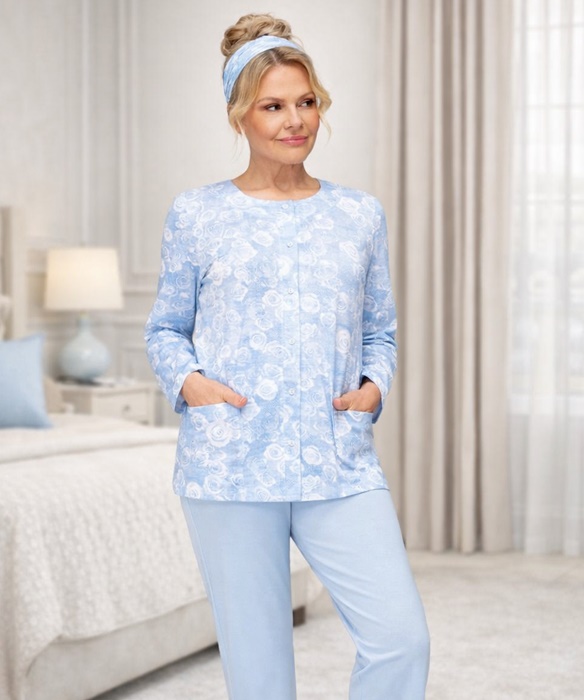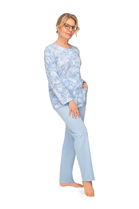 Piżama damska Martel Rozpinana Długi rękaw błękit róże: