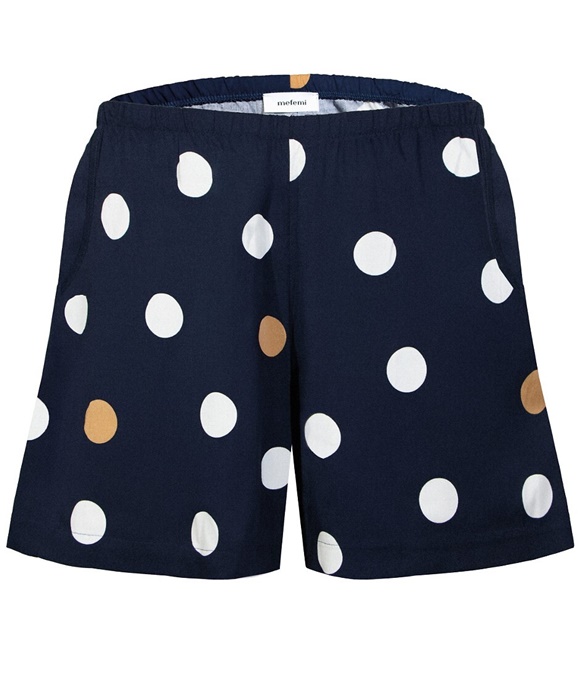 Piżama damska z krótkim rękawem i krótkimi spodenkami w groszki. Bluzka od piżamy ma okrągły dekolt i krótkie rękawki. Spodnie typu szorty są w grochy. Piżama damska Mefemi uszyta jest z wysokiej jakości wiskozy.