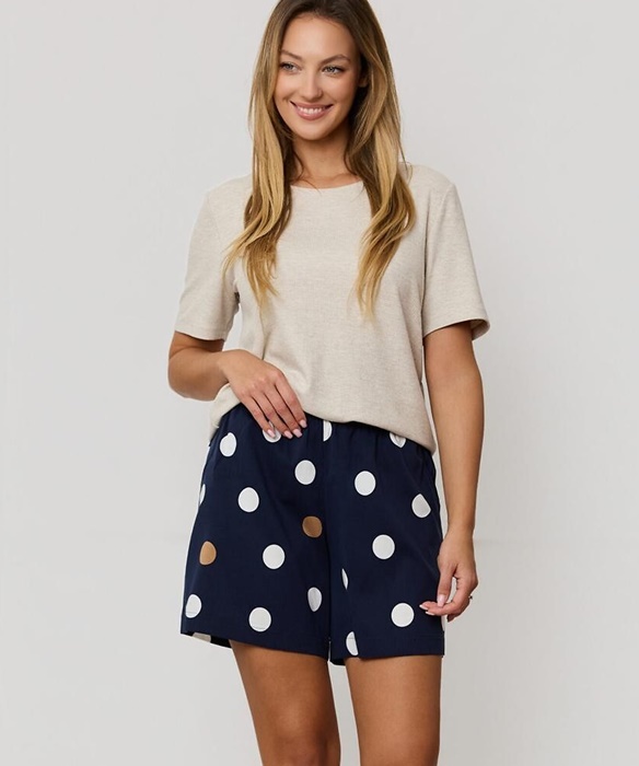 Piżama damska Mefemi Oceane krótkie spodenki beż granat grochy: