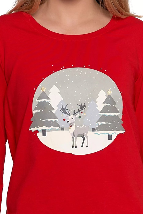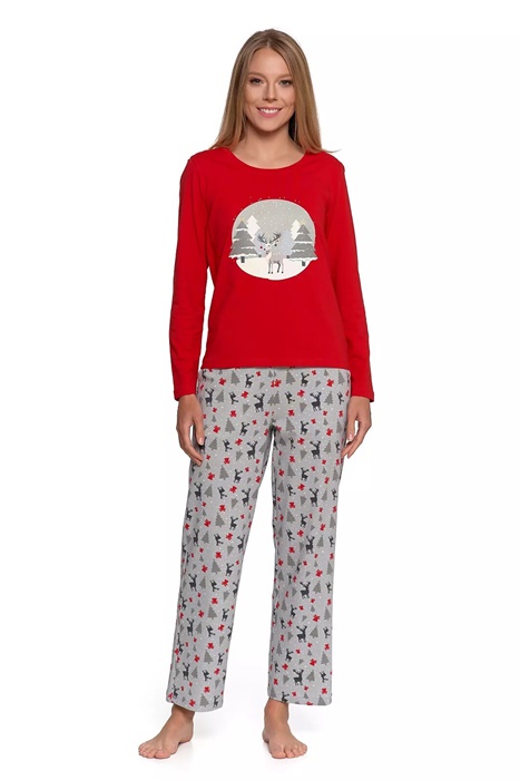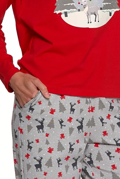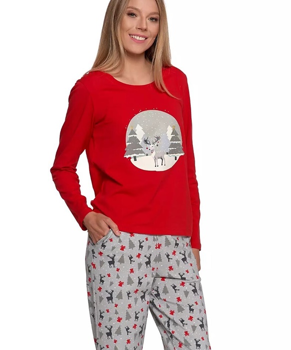 Piżama damska Moraj długi rękaw Świąteczny motyw czerwona: