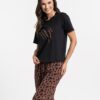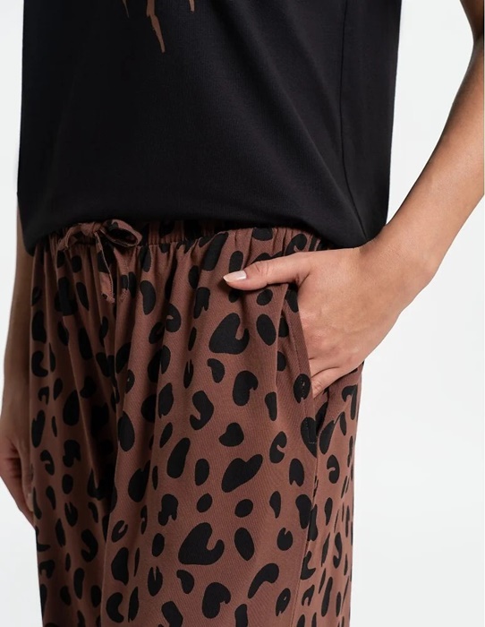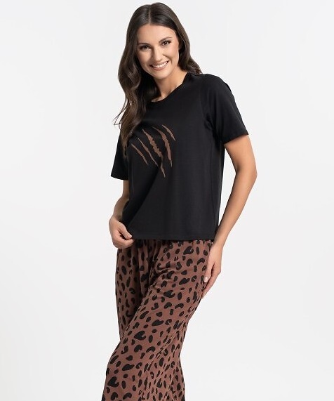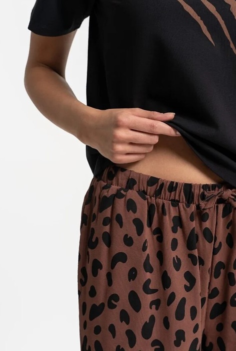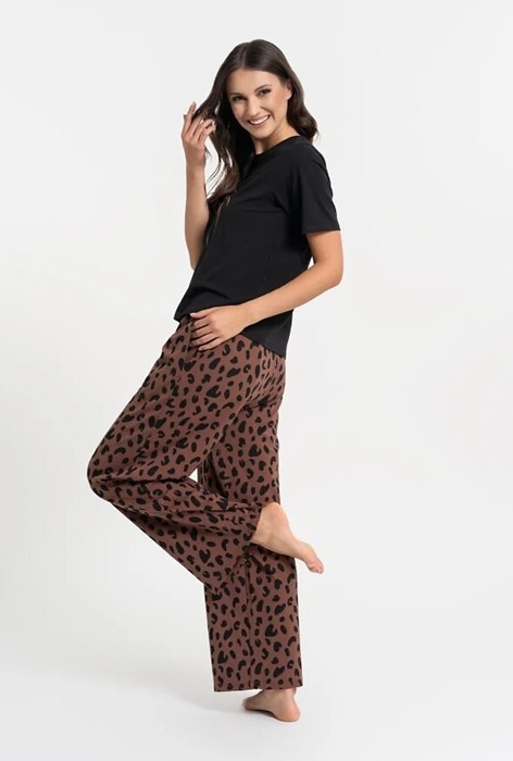 Piżama damska Moraj krótki rękaw i długie spodnie czarno brązowa: