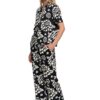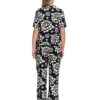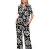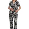 Piżama damska Moraj krótki rękaw rozpinana czarna w kwiaty: