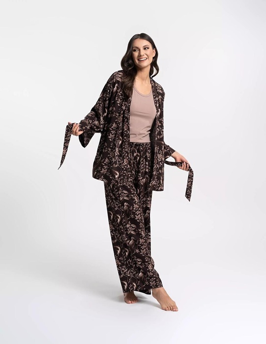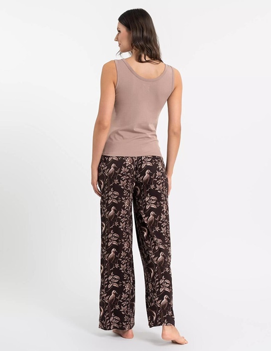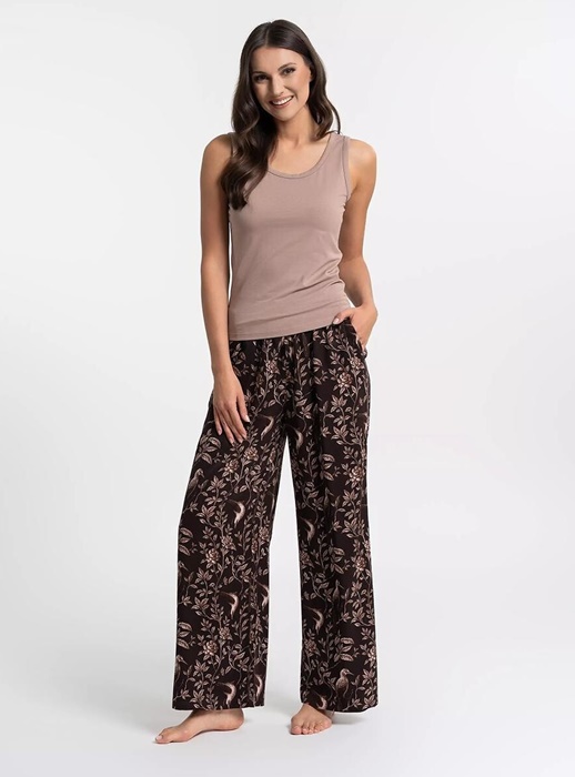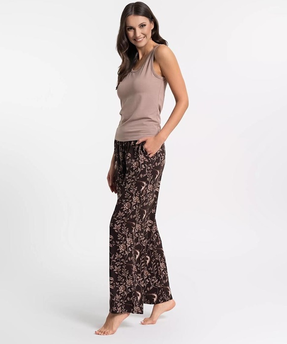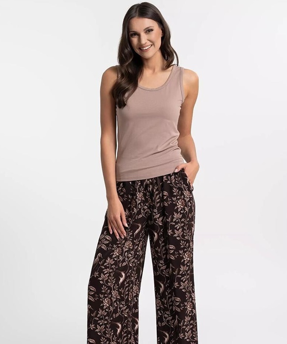 Piżama damska Moraj na ramiączkach długie luźne spodnie kawa: