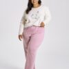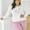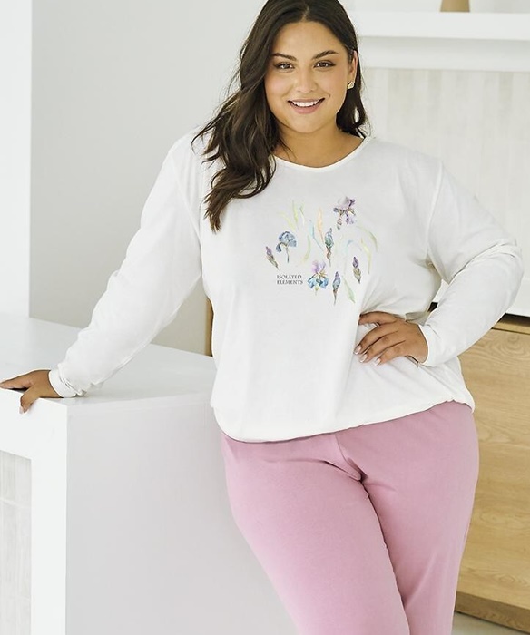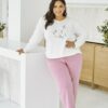 Piżama damska Plus Size długa Taro Monica 3470 w kolorze śmietanki i jasnego różu.