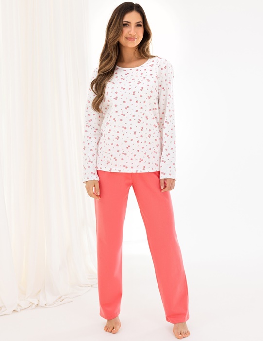 Piżama damska Regina 717 z długim rękawem koralowa ecru: