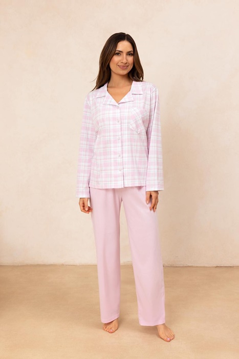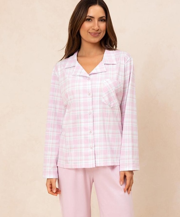 Piżama damska Regina 727 długi rękaw Rozpinana koszula różowa: