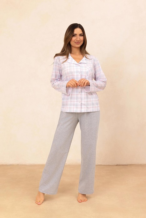 Piżama damska Regina 727 długi rękaw Rozpinana koszula szara: