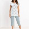 Piżama damska Regina 730 krótki rękaw rybaczki w koła zielona: