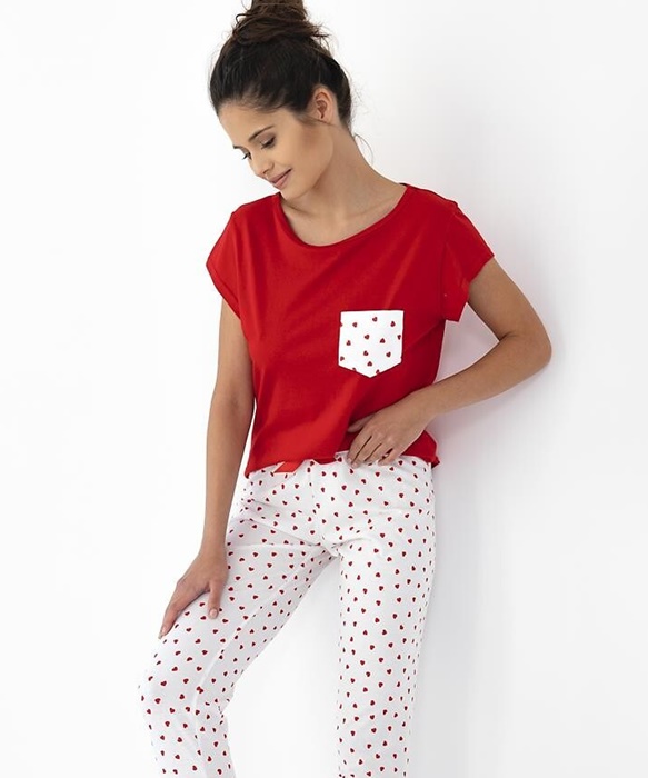 Piżama damska Sensis Adelaide biało czerwona w serca:
