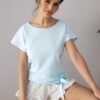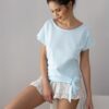 Piżama damska Sensis Areta krótkie spodenki błękitno kremowa: