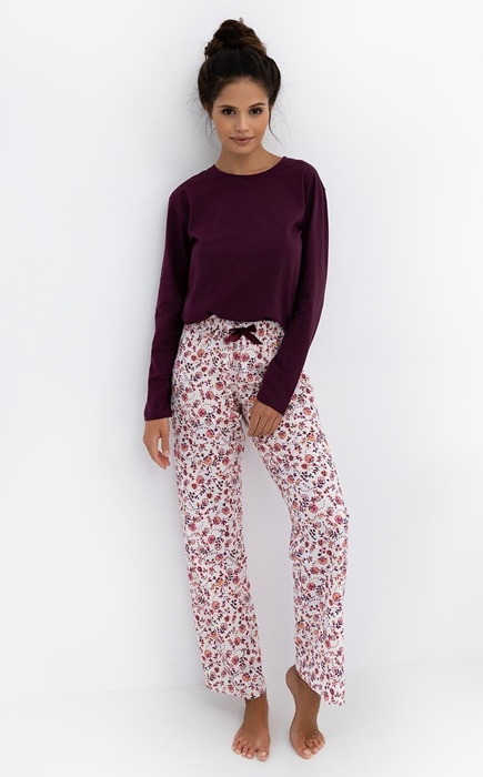 Piżama damska Sensis Heidi Bawełna długi rękaw burgundowa: