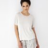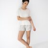 Piżama damska z bluzką z krótkim rękawem i z krótkimi spodniami w paski. Bluzka od piżamy ma dekolt okrągły. Spodnie od piżamy są krótkie. Idealna piżama damska na prezent dla kobiety! Jasna piżama damska od Sensis z delikatnej wiskozy.