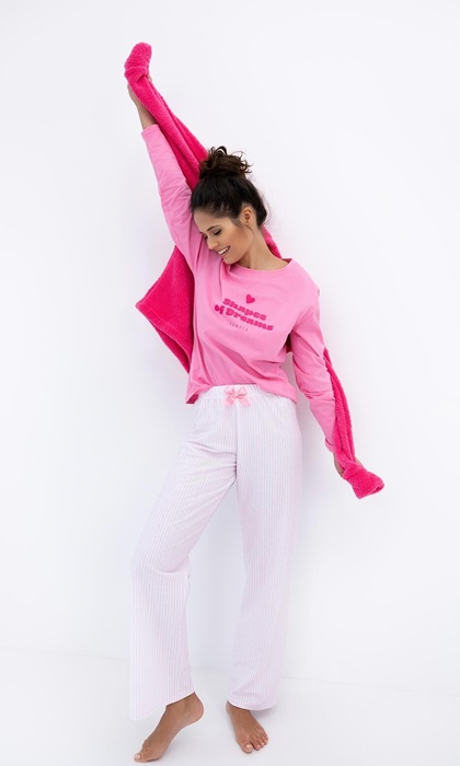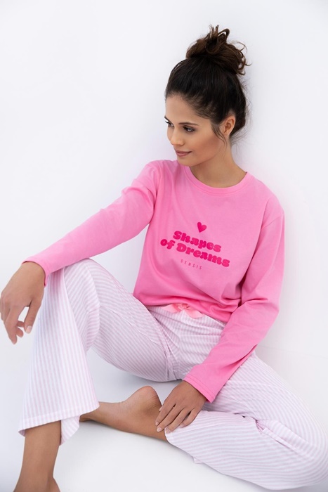 Piżama damska Sensis Malaya długie spodnie długi rękaw róż śmietanka: