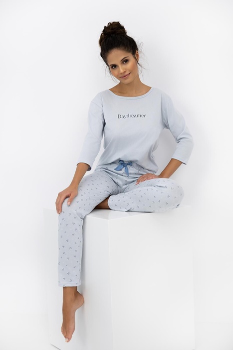 Piżama damska Sensis rękaw 3/4 długie spodnie szary gołębi: