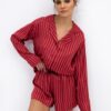 Piżama damska Sensis Vivienne krótkie spodnie rozpinana bordo: