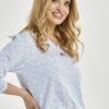 Piżama damska Taro z rękawem 3/4 długości oraz długimi spodniami 7/8 długości. Błękitno różowa piżama damska ze wzorzystą bluzką. Idealna długa piżama damska na co dzień – wygodna, klasyczna.