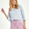 Piżama damska Taro z rękawem 3/4 długości oraz długimi spodniami 7/8 długości. Błękitno różowa piżama damska ze wzorzystą bluzką. Idealna długa piżama damska na co dzień – wygodna, klasyczna.