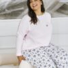 Piżama damska Taro z długim rękawem oraz długimi spodniami. Jasno różowy kolor długiej piżamy bawełnianej. Wygodna 100% bawełniana piżama damska plus size.