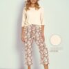Piżama damska Taro z rękawem 3/4 długości oraz długimi spodniami. Piżama damska ze wzorzystymi długimi spodniami. Bluzka w prążek. Idealna długa piżama damska na co dzień – wygodna, klasyczna, bawełniana.