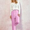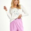 Piżama damska Taro z długim rękawem oraz długimi spodniami. Kremowo różowa piżama damska z bluzką z długim rękawem. Idealna długa piżama damska na co dzień – wygodna, klasyczna.