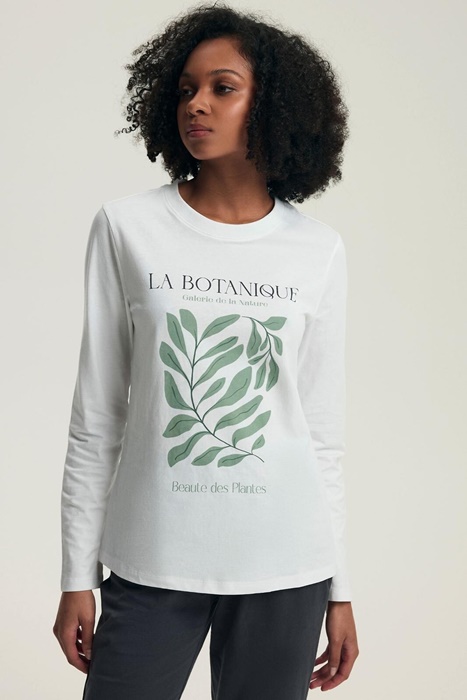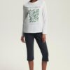 Piżama damska Henderson z bluzką z długim rękawem i spodniami długości 3/4. Bluzka od piżamy ma okrągły dekolt. Piżama damska Henderson uszyta jest z miękkiej, wysokiej jakości 100% bawełny. Piżama w kolorze waniliowo szarym z roślinnym motywem.