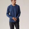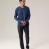 Piżama męska Atlantic z długim rękawem oraz długimi spodniami. Bluzka od piżamy z długim rękawem ma dekolt w szpic. Długie spodnie są w elegancki wzór.