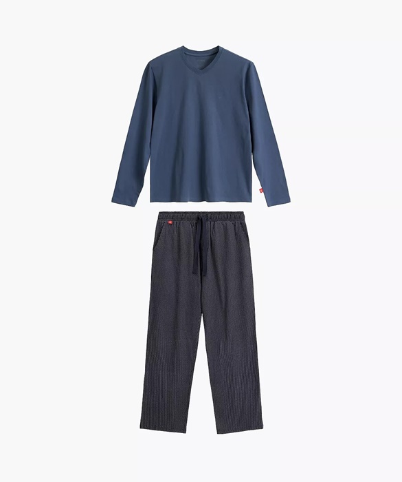 Elegancka Piżama męska z długimi rękawami Atlantic niebiesko granatowa.