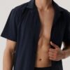 Piżama męska Atlantic długie spodnie krótki rękaw rozpinana granat: