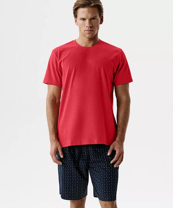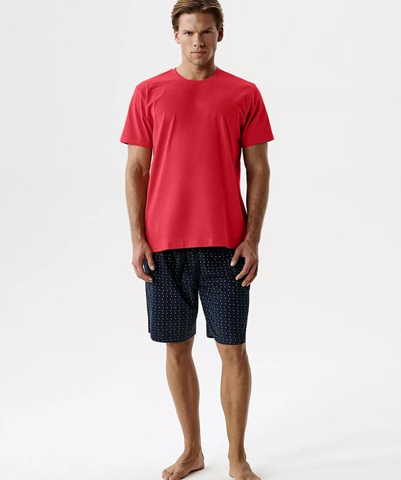 Piżama męska Atlantic krótkie spodenki bawełna czerwień granat: