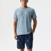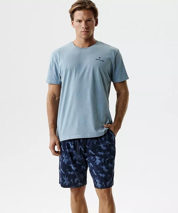 Piżama męska Atlantic krótkie spodnie bawełna niebieski denim: