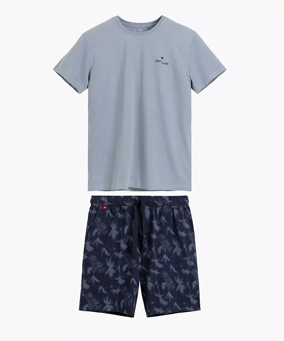 Piżama męska Atlantic z krótkim rękawem oraz krótkimi spodenkami. Bluzka od piżamy z krótkim rękawkiem ma okrągły dekolt. Krótkie spodenki mają w pasie troczek.