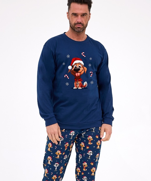 Piżama męska Cornette 115/294 Dog długa pieski granatowa: