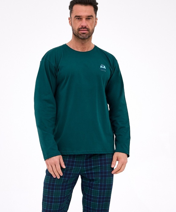 Piżama męska Cornette Bawełniana długi rękaw ciemno zielona: