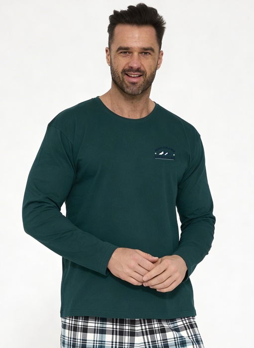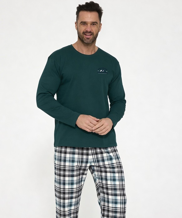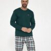 Piżama męska Cornette bawełniana długi rękaw krata zielona: