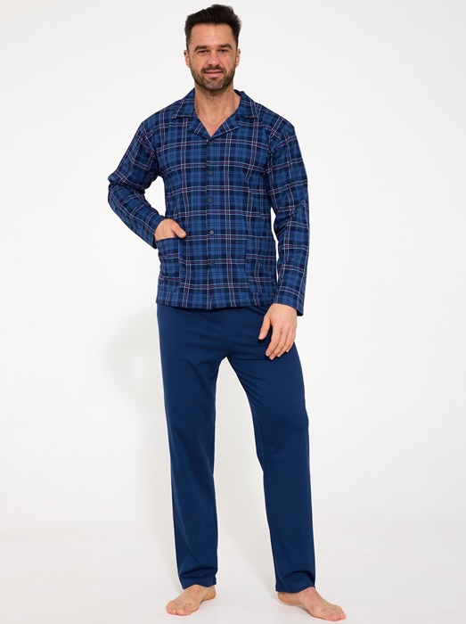 Piżama męska Cornette długi rękaw Rozpinana koszula granatowa: