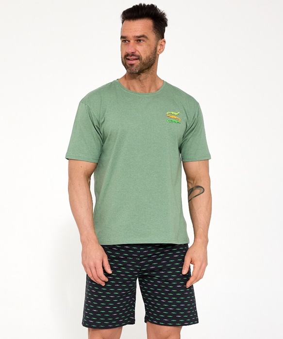 Piżama męska Cornette krótki rękaw i krótkie spodnie zielona