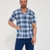 Piżama męska Cornette krótki rękaw Rozpinana koszula niebieska:
