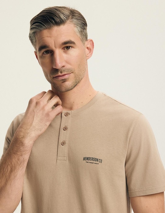 Piżama męska z krótkim rękawem i krótkimi spodniami. Koszulka od piżamy ma okrągły dekolt z trzema guzikami. Spodnie są z wygodną gumką, jednolite. Piżama męska krótka uszyta ze 100% bawełny marki Henderson.