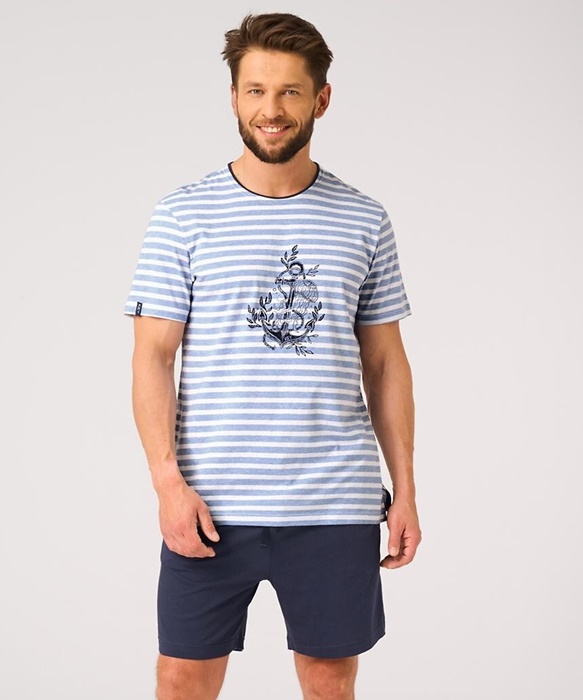 Piżama męska Key Bawełna krótkie spodenki niebieska kotwica: