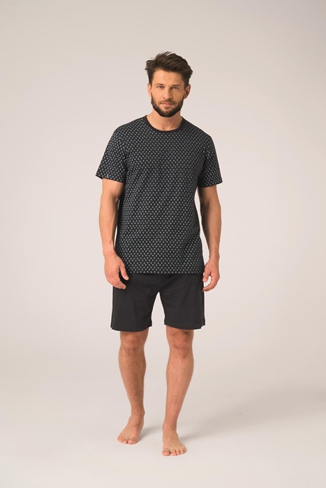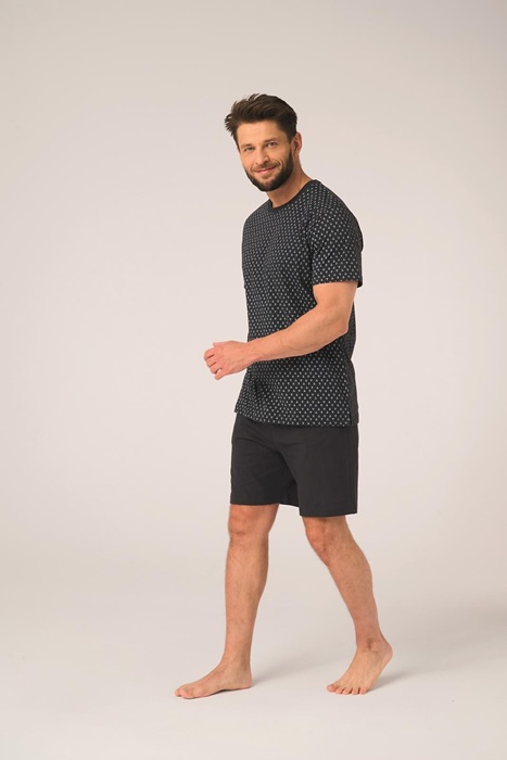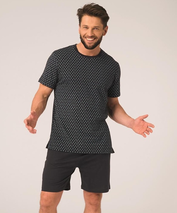 Piżama męska Key Bawełniana krótkie spodenki czarny granat: