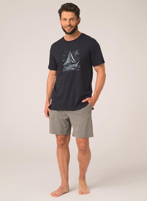 Piżama męska Key Bawełniana krótkie spodenki granat szary: