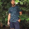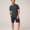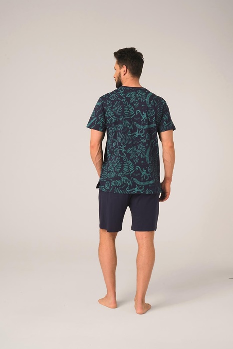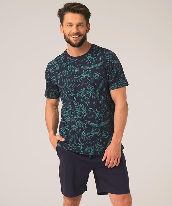 Piżama męska Key Bawełniana krótkie spodenki granat wzór:
