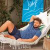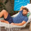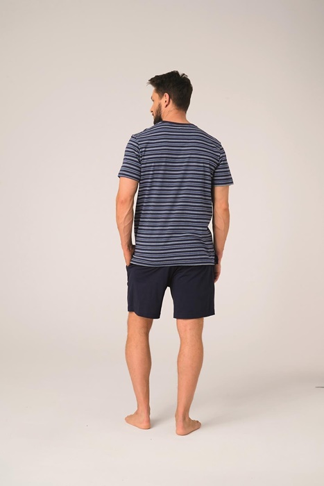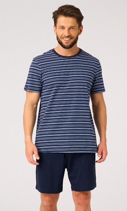 Piżama męska Key Bawełniana krótkie spodenki paski granatowa:
