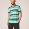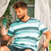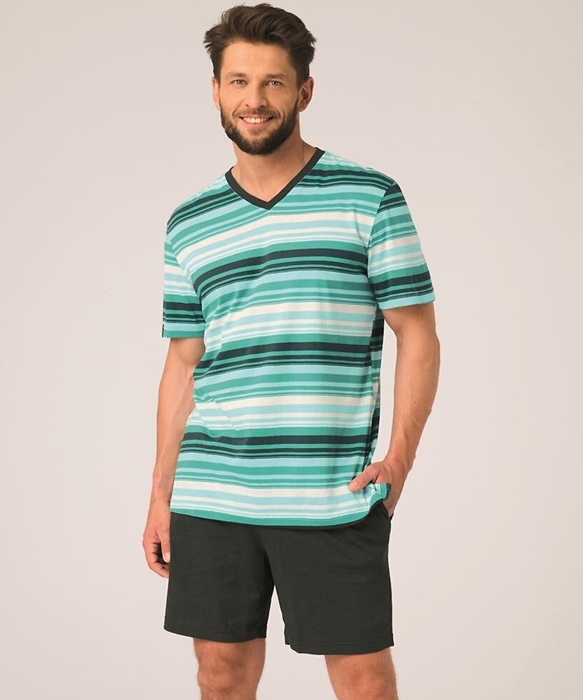 Piżama męska Key Bawełniana krótkie spodenki paski zielona: