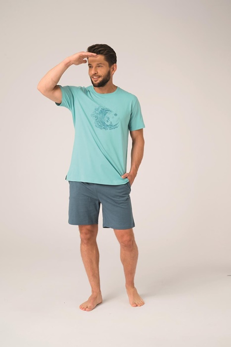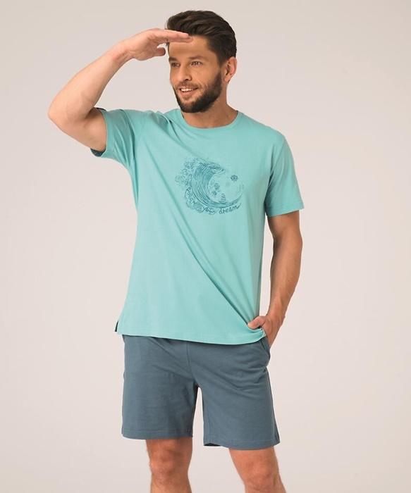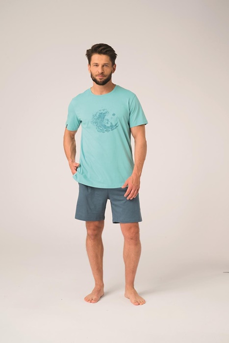 Piżama męska Key Bawełniana krótkie spodenki turkus morski: