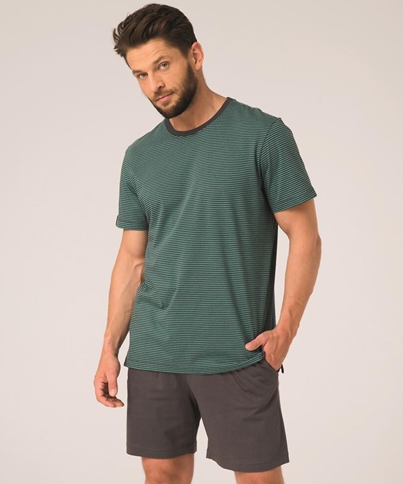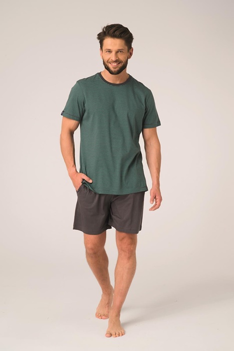 Piżama męska Key Bawełniana krótkie spodenki zielony grafit paski: