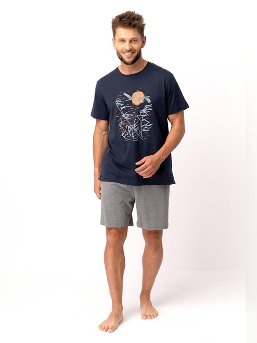 Piżama męska Key MNS 749 A25 bawełniana krótka granat szary: